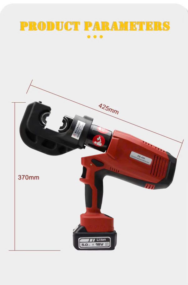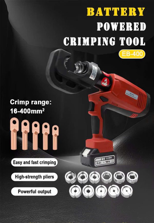 CHANGYOU EB–400 là mã Máy ép cos dùng pin hay còn gọi là kìm ép cos thủy lực dùng Pin của hãng CHANGYOU chuyên dùng bấm cos 16-400mm2 lục giác,